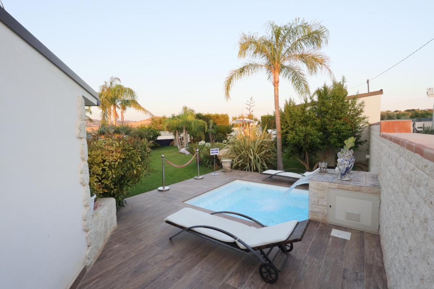 Suite Deluxe. Suite dotata di piscina con vista. Suite climatizzata dotata di ingresso indipendente, 1 camera da letto e 1 bagno con cabina doccia e bidet. Dotata di una terrazza con vista sul giardino, questa suite offre anche pareti insonorizzate e una TV a schermo piatto con servizi di streaming. OkL’unità dispone di 1 letto. ;