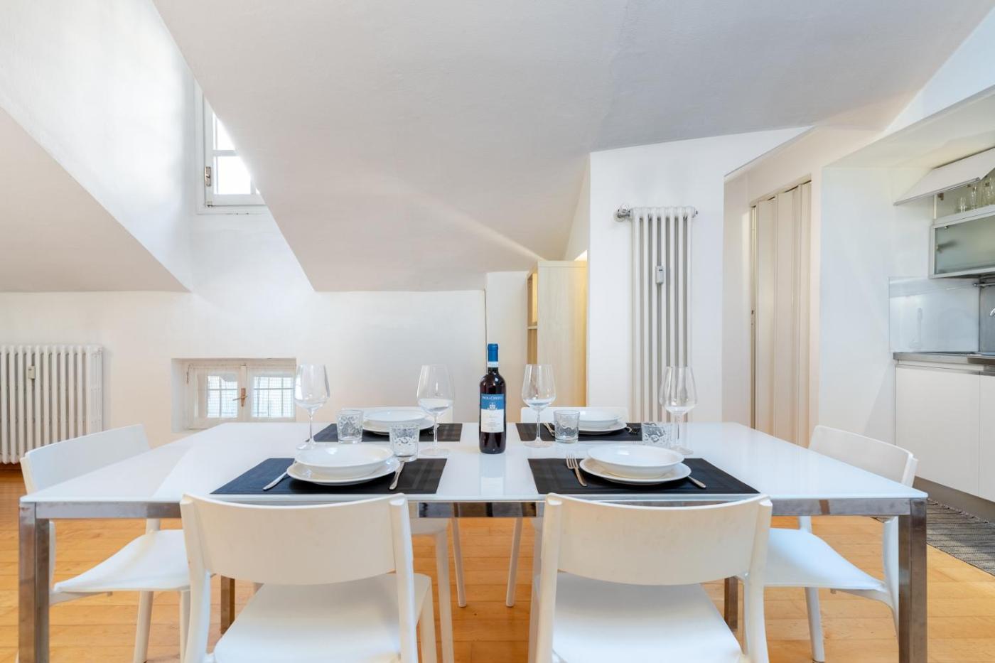 Appartamento con 1 Camera da Letto. Providing free toiletries, this apartment includes a private bathroom with a shower, a bidet and a hairdryer. Guests can make meals in the kitchen that is equipped with a stovetop, a refrigerator, a dishwasher and kitchenware. The spacious air-conditioned apartment provides a TV with cable channels, a washing machine, a tea and coffee maker, a wardrobe as well as city views.