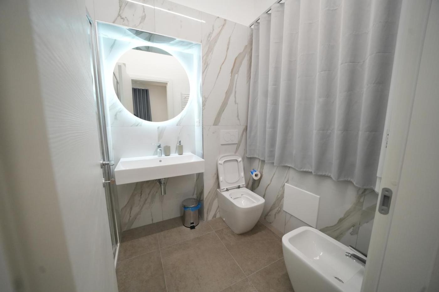Camera Quadrupla con Bagno Privato. The spacious quadruple room features air conditioning, a wardrobe, as well as a private bathroom boasting a shower and a bidet. This quadruple room has an electric kettle, heating, a flat-screen TV and city views. The unit has 3 beds.