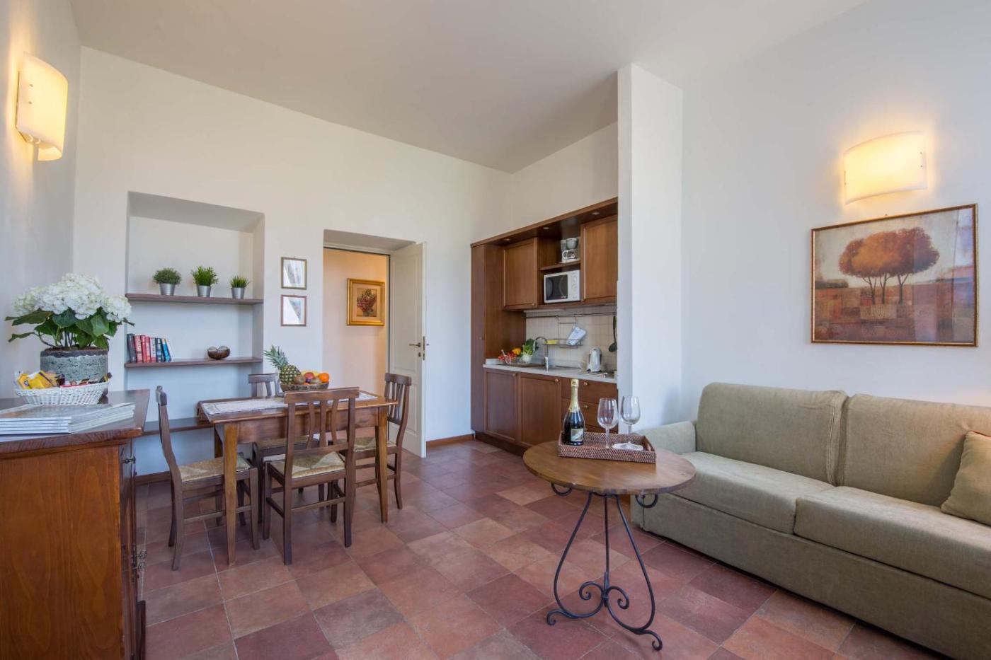Ogni alloggio comprende una cucina con utensili e tavolo da pranzo, una TV a schermo piatto con canali satellitari e un bagno privato dotato di bidet,di cortesia e asciugacapelli. In dotazione anche un frigorifero, un microonde e un piano cottura, oltre a una macchina da caffè e un bollitore elettrico.
