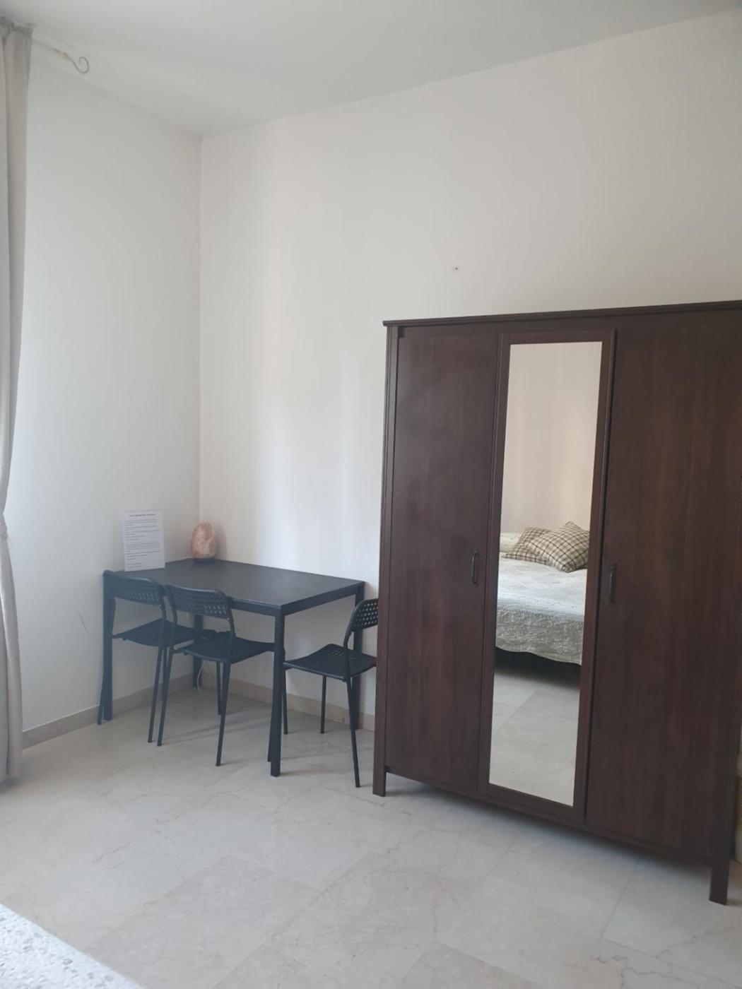 Camera Matrimoniale Standard con Bagno in Comune. Camera matrimoniale dotata didi cortesia e bagno in comune con doccia, bidet e asciugacapelli. Dispone di aria condizionata, balcone, riscaldamento e TV a schermo piatto. Presenta 1 letto. ;