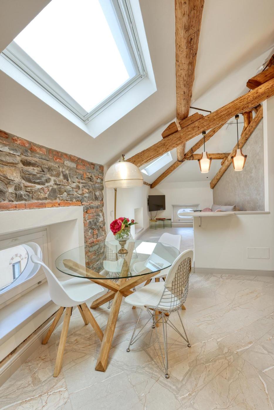 Appartamento Attico. Appartamento con lavatrice, forno a microonde, lavastoviglie, bollitore elettrico, tostapane eper la preparazione di tè e caffè. La suite dispone di un bellissimo soggiorno mansardato diviso da una parete che separa la camera da letto e il divano-letto del soggiorno. La camera da letto e il soggiorno non sono completamente indipendenti. ;