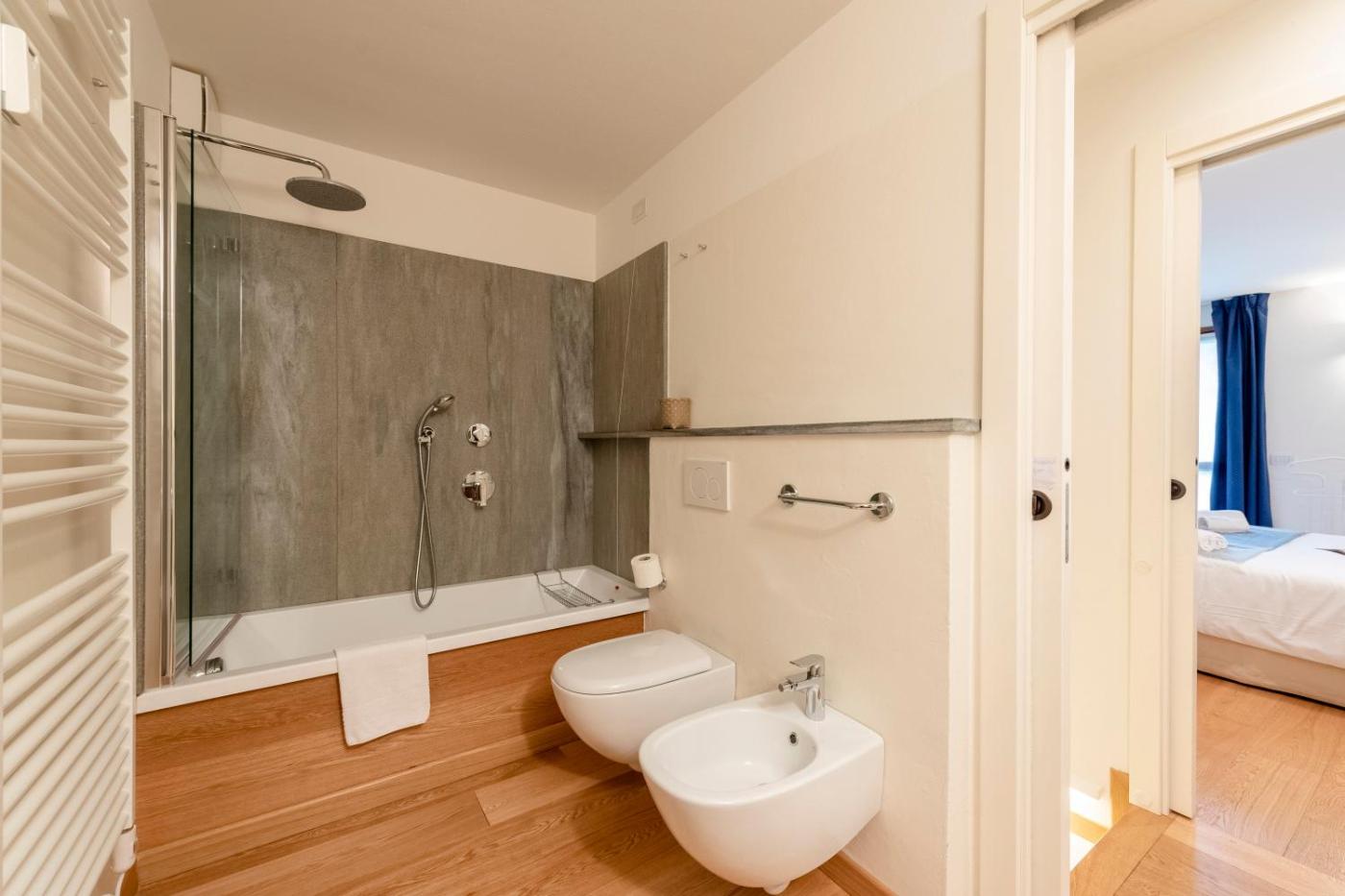 Appartamento con Terrazza. The fireplace is the standout feature of this apartment. This spacious apartment features 1 living room, 2 separate bedrooms and 2 bathrooms with a bath or a shower and a bidet. Guests can make meals in the kitchen that features a stovetop, a refrigerator, a dishwasher and kitchenware. Boasting a terrace with mountain views, this apartment also features a washing machine and a TV. The unit has 2 beds.