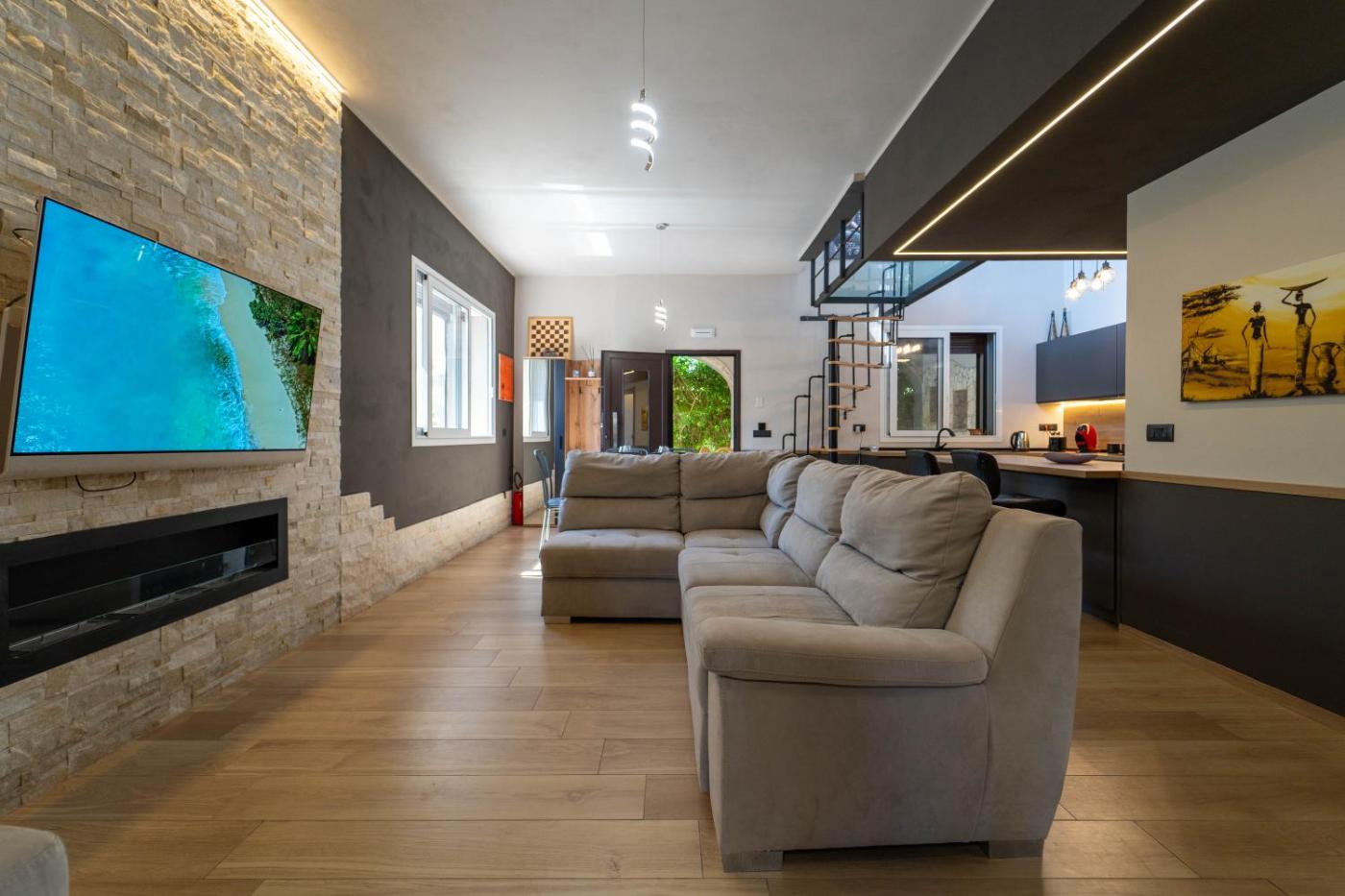 Villa con Vista Mare. This luxurious villa features a private pool, a hot tub and a fireplace. Featuring a private entrance, this air-conditioned villa consists of 1 living room, 3 separate bedrooms and 2 bathrooms with a shower and a bidet. Guests will find a stovetop, a refrigerator, kitchenware and an oven in the well-equipped kitchen. The villa also offers a barbecue. Boasting a terrace with sea views, this villa also provides a washing machine and a flat-screen TV with streaming services. The unit offers 5 beds.