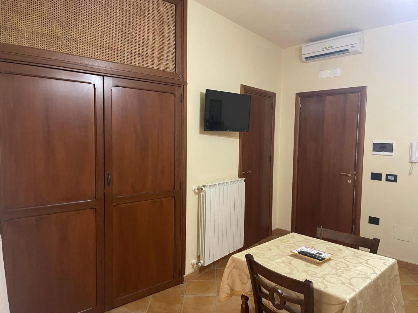 Monolocale Familiare. The well-equipped kitchenette has a stovetop, a refrigerator and kitchenware. The spacious studio features air conditioning, a private entrance, a balcony with ancourtyard view as well as a private bathroom boasting a shower. The unit has 2 beds.