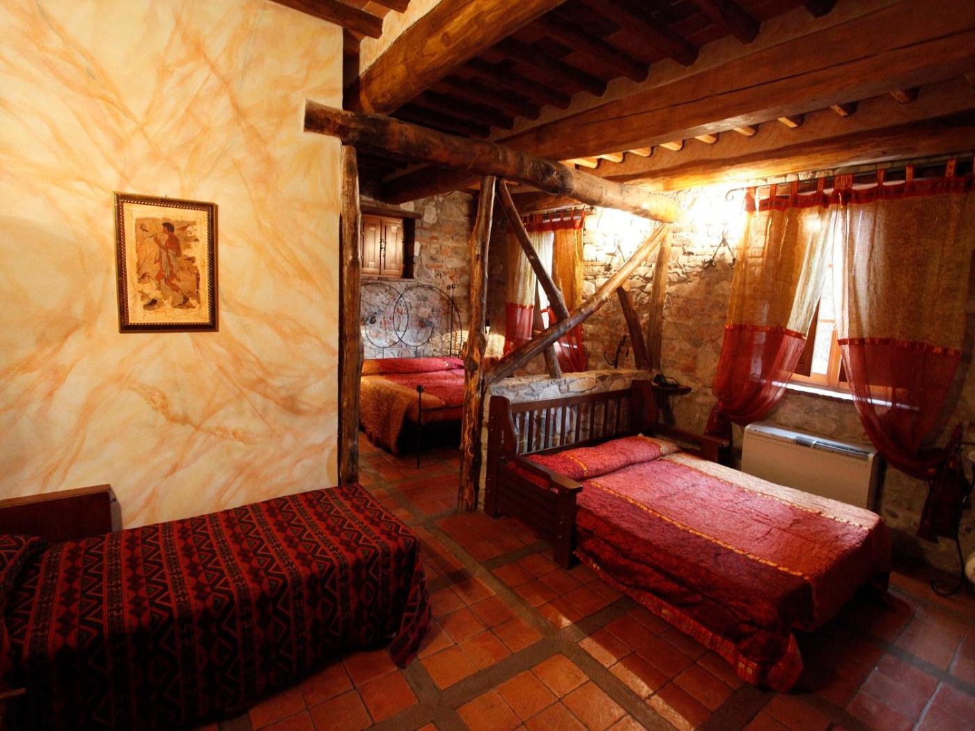 Arredate in stile medievale, tutte le sistemazioni della Corte Degli Dei presentano mobili tradizionali, pavimenti piastrellati e un bagno privato completo di asciugacapelli edi cortesia, mentre alcune vantano un letto a baldacchino.