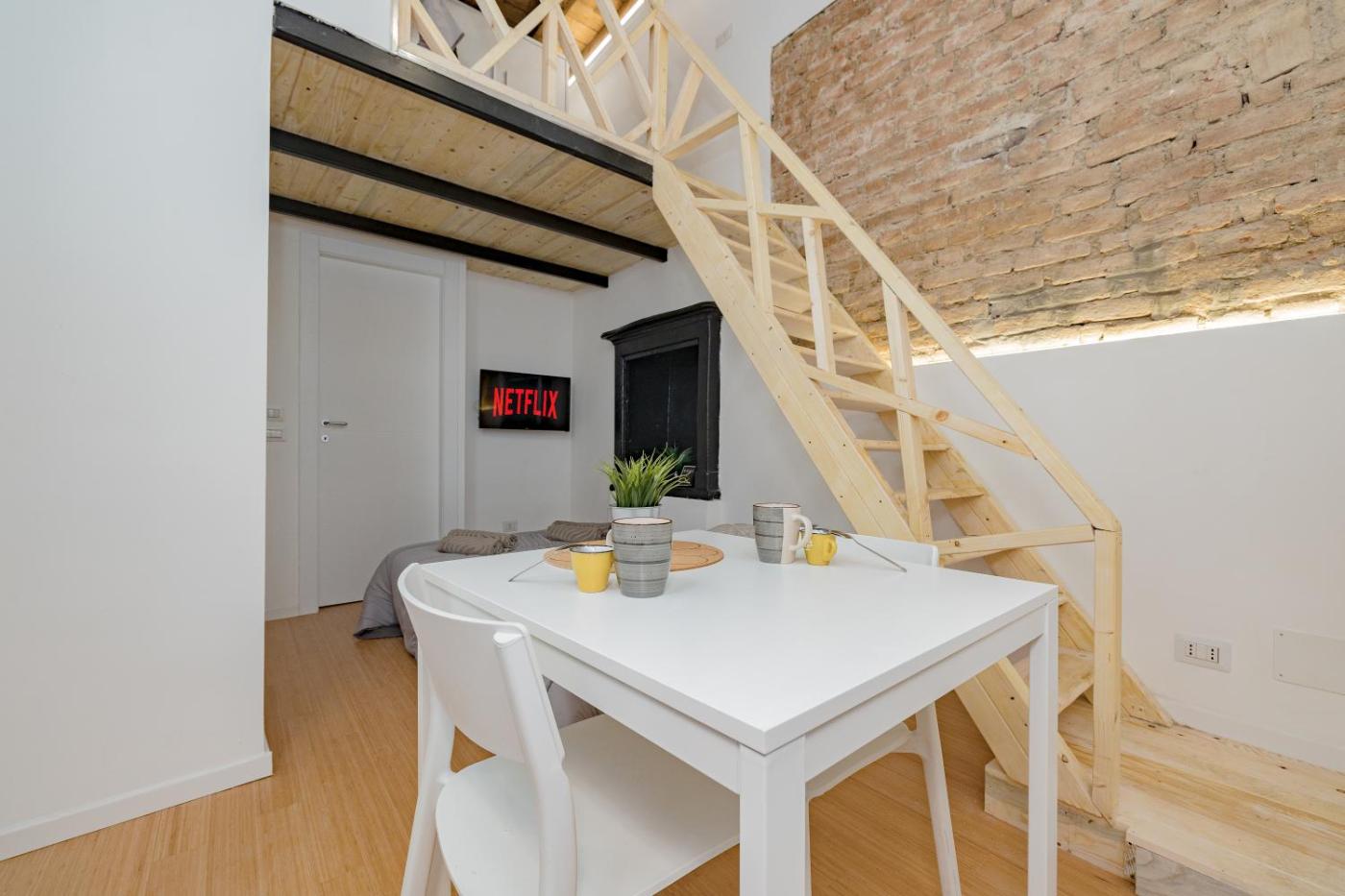 Loft. This apartment is comprised of 1 living room, 1 separate bedroom and 1 bathroom with a shower and free toiletries. The well-equipped kitchenette features a stovetop, a refrigerator, a dishwasher and kitchenware. This apartment is air-conditioned and has a seating area with a flat-screen TV, a dining area, a wardrobe and heating. The unit offers 2 beds.