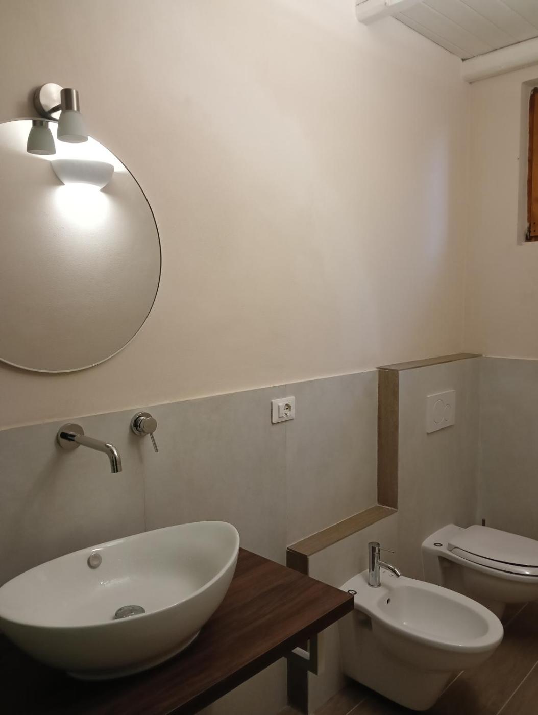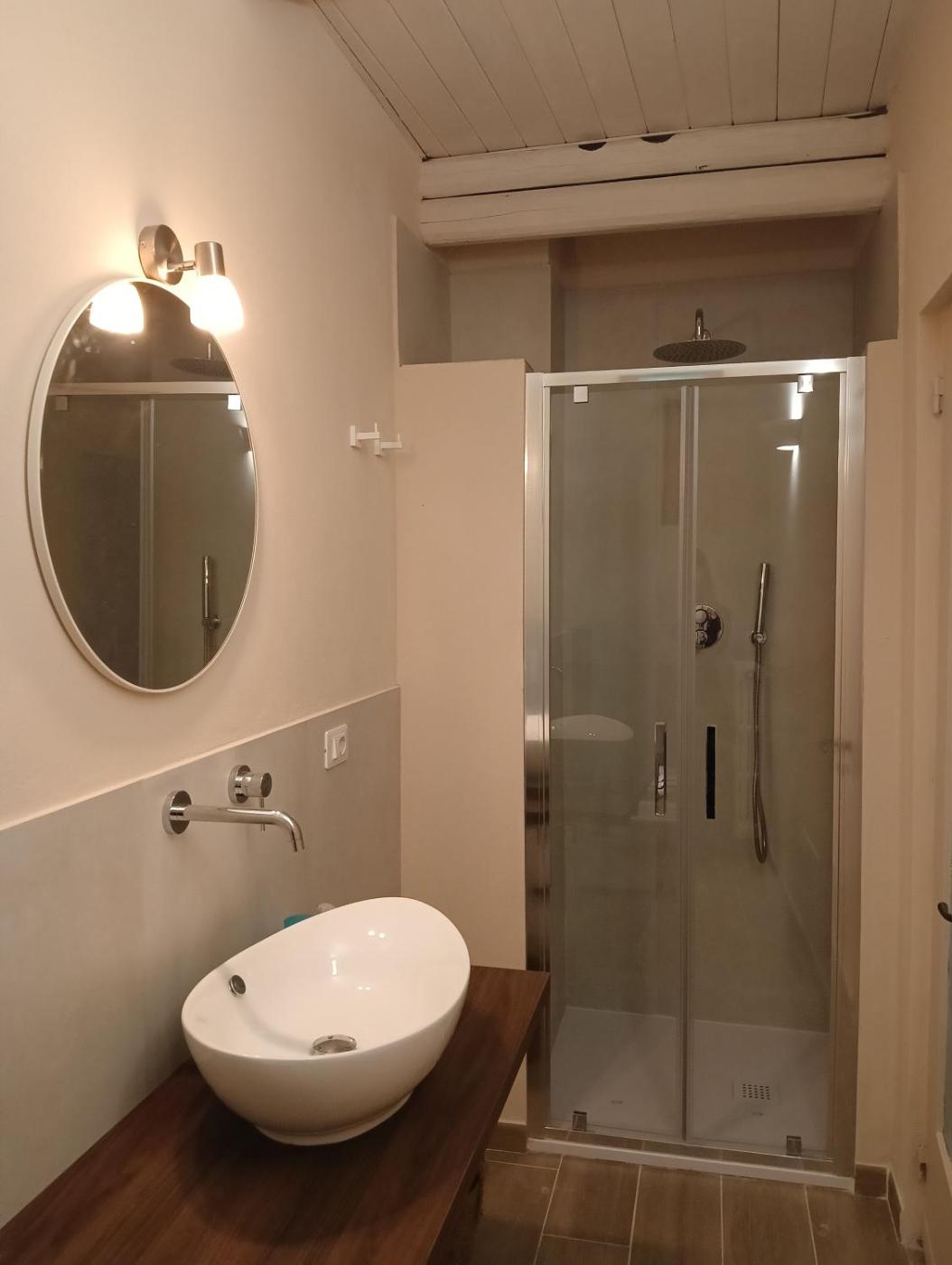 In ogni alloggio troverete un bagno privato con doccia,di cortesia e asciugacapelli.