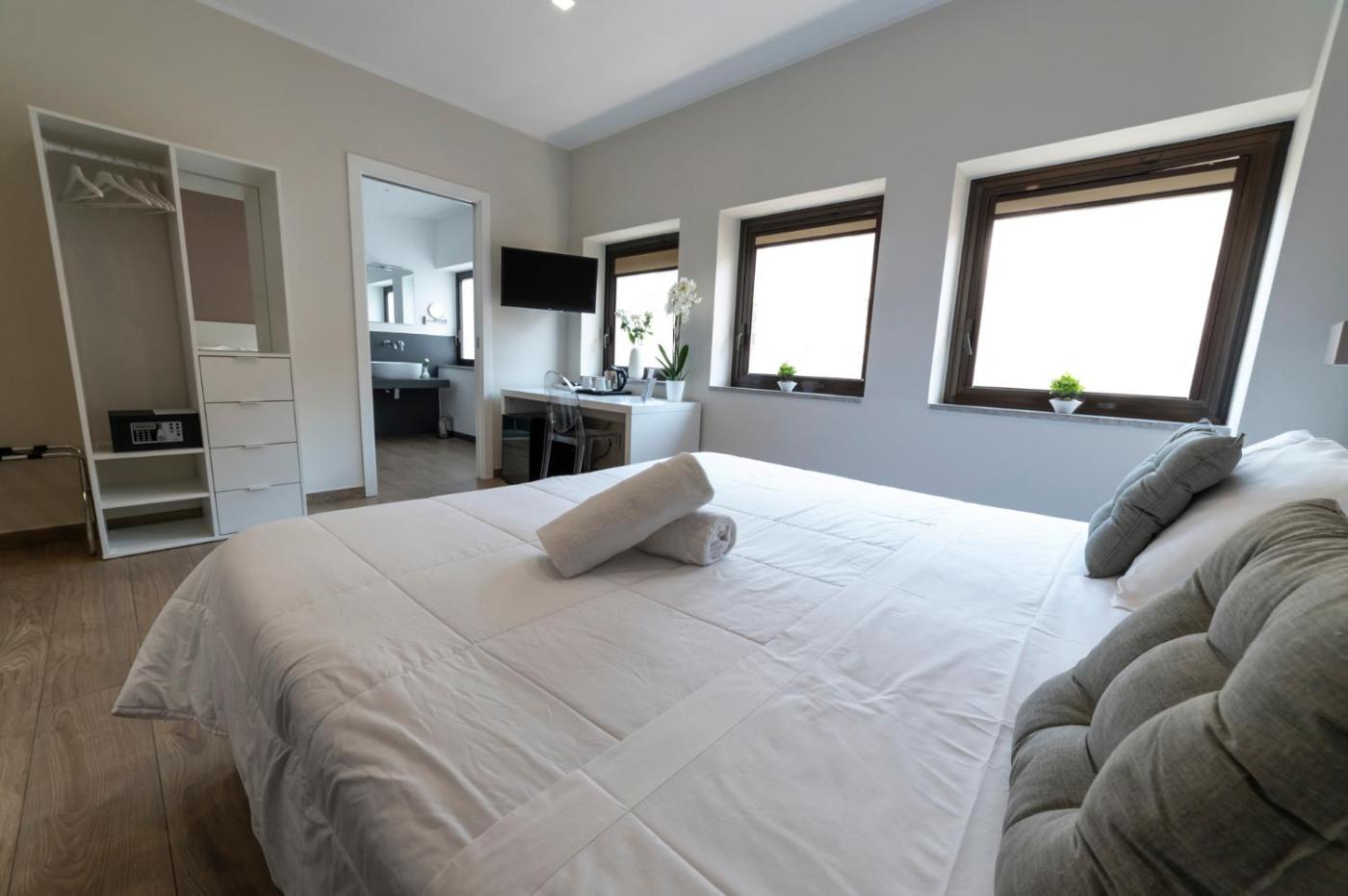 Camera Quadrupla Deluxe. Featuring free toiletries, this quadruple room includes a private bathroom with a walk-in shower, a bidet and a hairdryer. This quadruple room has air conditioning, soundproof walls, flat-screen TV with cable channels, as well as winechampagne for guests. ;