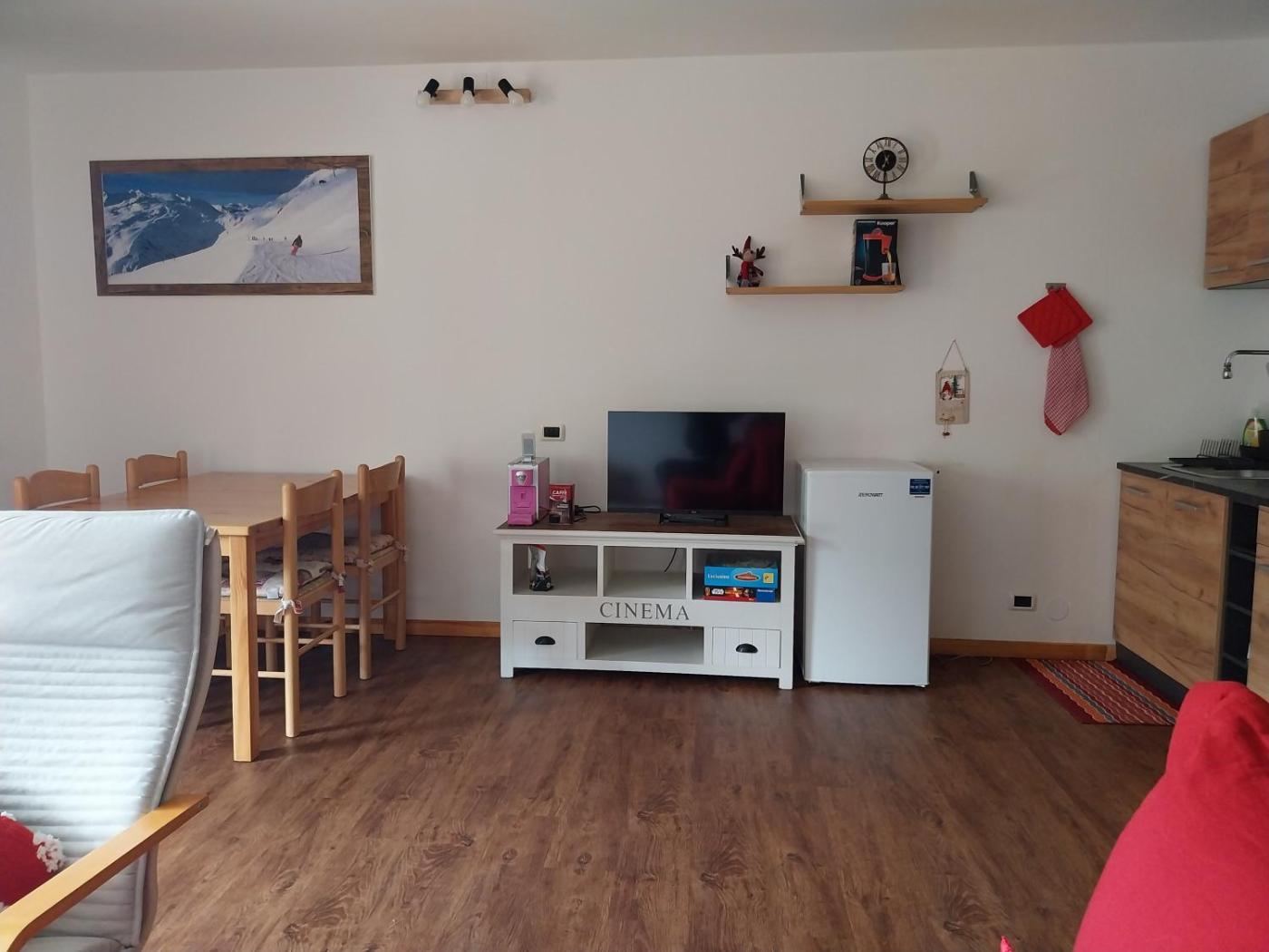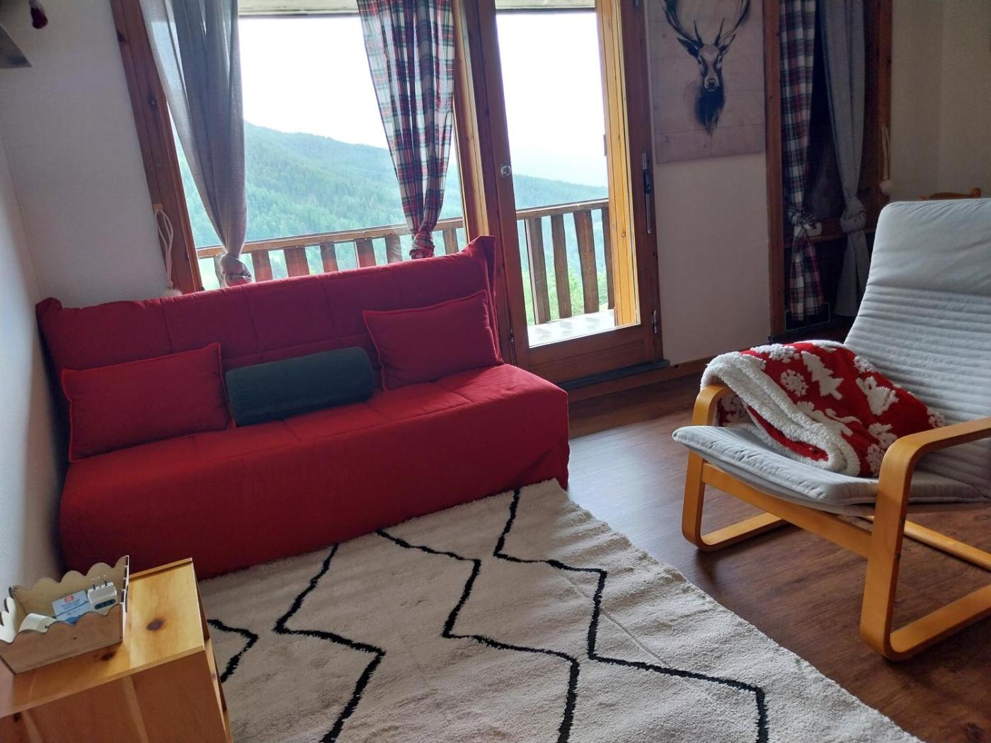 Questo appartamento ha 1 camera da letto, 1 bagno, lenzuola, asciugamani, una TV a schermo piatto, una zona pranzo, una cucina con utensili e una terrazza con vista sulla montagna.