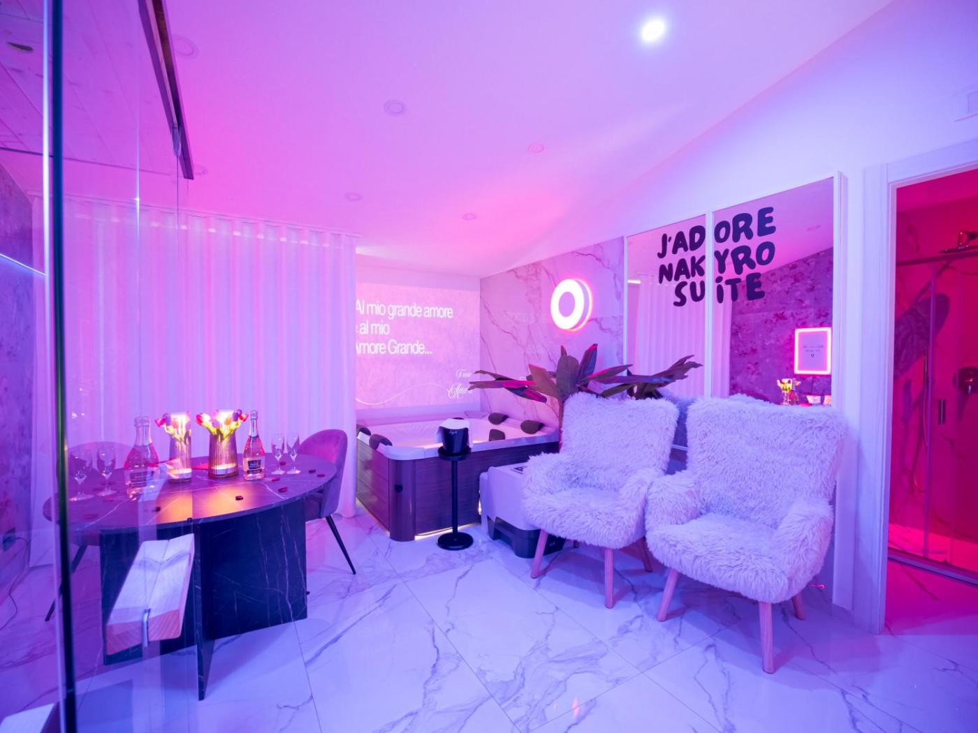 Nakyro suite è ubicato a Pomigliano dʼArco, a 15 km da Stazione di Napoli Centrale e 17 km da Catacombs of Saint Gaudioso. Il parcheggio privato può essere utilizzato a un costo aggiuntivo. Il love hotel offre una sauna, il servizo in camera e il WiFi gratuito in tutta la struttura.