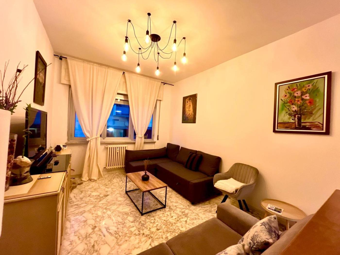 Appartamento Bilocale. This spacious apartment features 1 living room, 2 separate bedrooms and 1 bathroom with a bath and free toiletries. The well-fitted kitchen has a refrigerator, a dishwasher, kitchenware and an oven. The apartment features a flat-screen TV with streaming services, a washing machine, a tea and coffee maker, a seating area as well as city views. The unit has 4 beds.