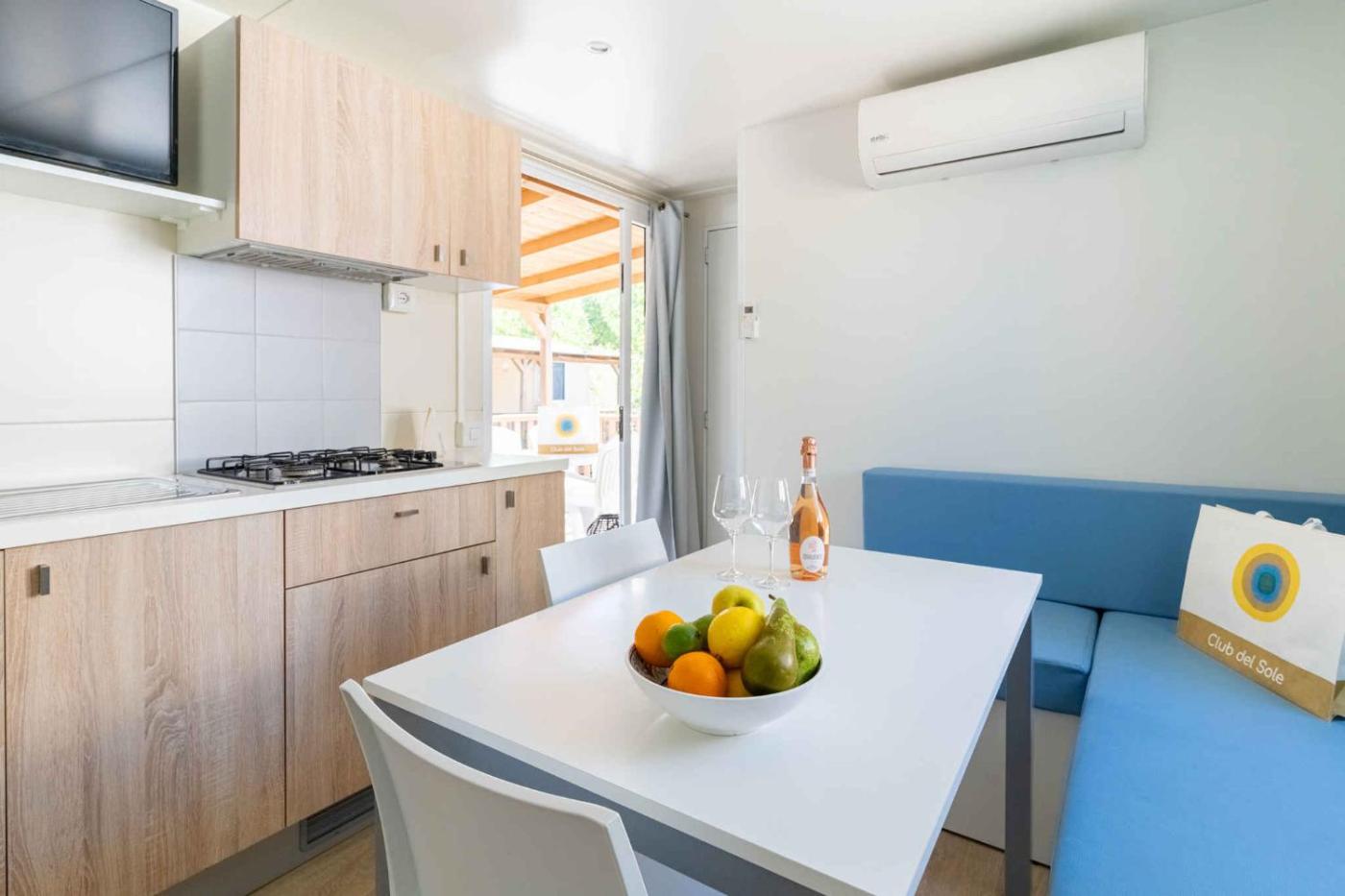 Casa Mobile. This air-conditioned mobile home consists of 1 living room, 2 separate bedrooms and 2 bathrooms with a shower. Guests can make meals in the fully equipped kitchenette that features a refrigerator, a dishwasher and a microwave. A seating area with a TV, a safe deposit box and a terrace are provided in this mobile home. The unit offers 5 beds. ;