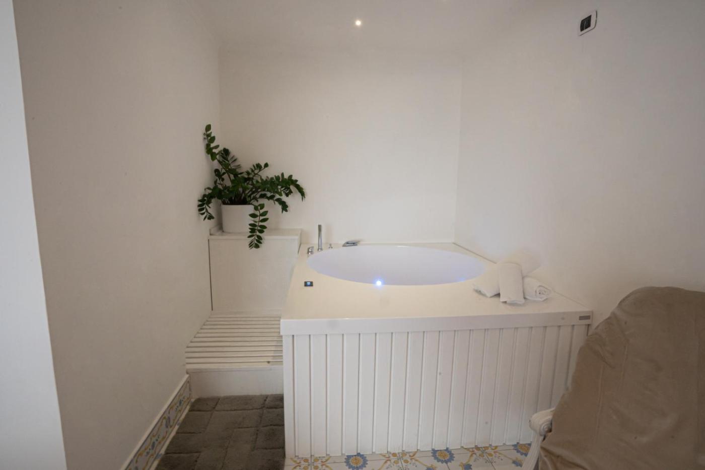 Suite Deluxe con Vista Mare. This luxurious suite has a hot tub, a spa bath and a sauna. This suite features 1 living room, 1 separate bedroom and 1 bathroom with a shower and free toiletries. The air-conditioned suite features a flat-screen TV with satellite channels, a minibar, a wardrobe, a sofa as well as sea views. The unit has 2 beds. ;