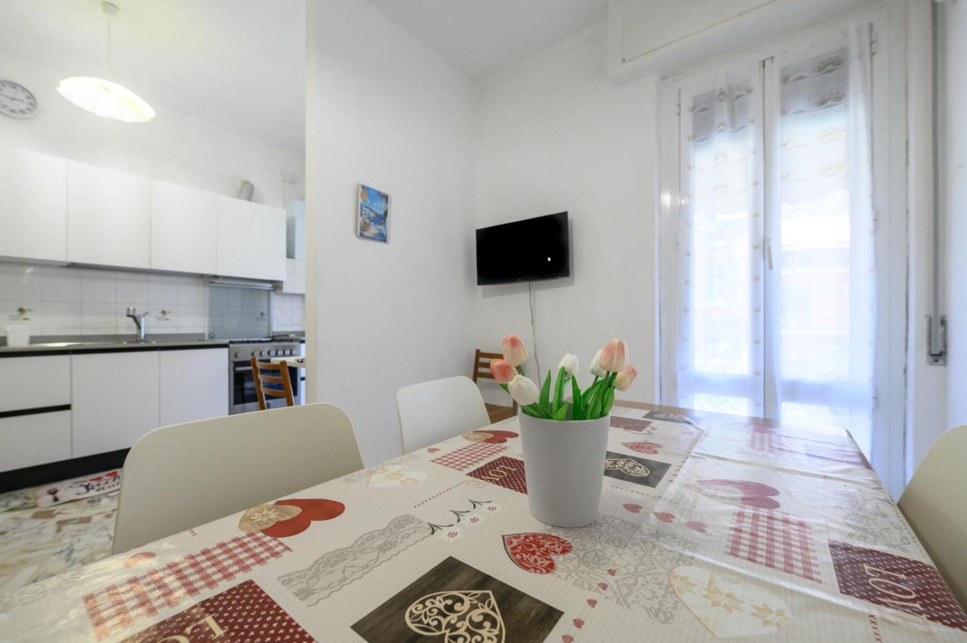Appartamento con 2 Camere da Letto. This spacious apartment is comprised of a kitchen, a seating area, 2 separate bedrooms and 1 bathroom with a shower and a bidet. The well-equipped kitchen features a stovetop, a refrigerator, kitchenware and a microwave. The air-conditioned apartment offers a flat-screen TV, a washing machine, a dining area, a wardrobe as well as a quiet street view. The unit offers 2 beds.