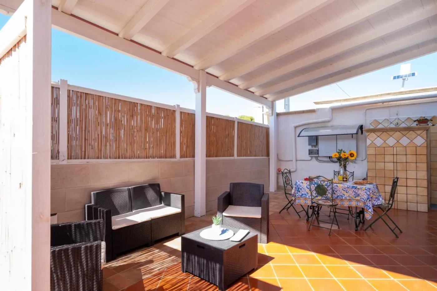 Villa con Vista Mare. Featuring a private entrance, this air-conditioned villa comprises 1 living room, 2 separate bedrooms and 1 bathroom with a shower. Guests will find a stovetop, a refrigerator and an oven in the kitchen. The villa also provides guests with a barbecue. Among the room amenities are a washing machine, a coffee machine, a wardrobe as well as a patio and sea views. The unit offers 4 beds.
