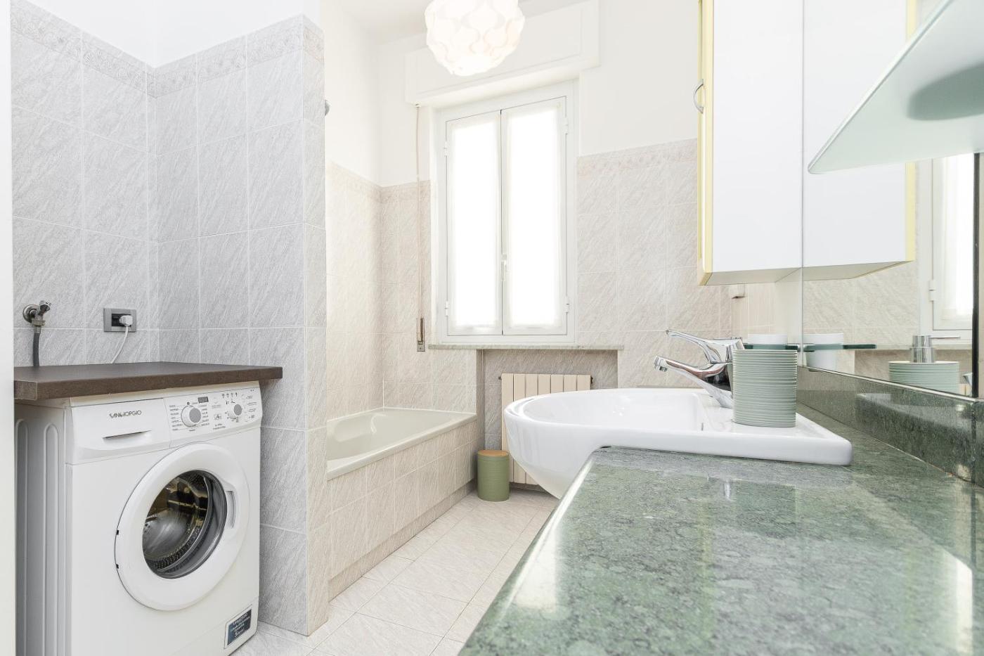 Appartamento con 2 Camere da Letto. This spacious apartment features 1 living room, 2 separate bedrooms and 1 bathroom with a bath and free toiletries. In the well-equipped kitchen, guests will find a stovetop, a refrigerator, a dishwasher and kitchenware. The air-conditioned apartment features a flat-screen TV, a washing machine, a tea and coffee maker, a seating area as well as sea views. The unit has 3 beds.