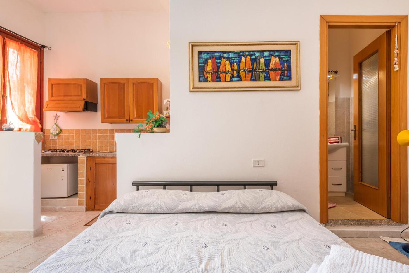 Questa casa vacanze con aria condizionata comprende 1 camera da letto e 1 bagno con doccia edi cortesia. Presso questa casa vacanze troverete asciugamani e lenzuola a disposizione.
